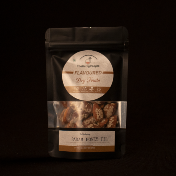 Introducing our Badam Honey Til - a delectable fusion of almonds, honey, and sesame seeds. With a perfect balance of sweetness and crunch, these oven-roasted almonds are a guilt-free delight, packed with nutrients to fuel your day. Ideal for satisfying cravings and perfect for snacking on the go.