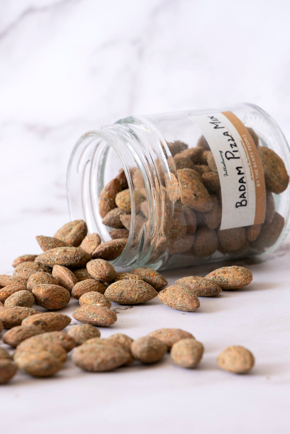 Embark on an unexpected culinary journey with The Berry People's Badam Pizza Mix. Imagine golden-roasted almonds seasoned with a symphony of classic Italian herbs and spices, conjuring the essence of a rustic pizza in every bite.