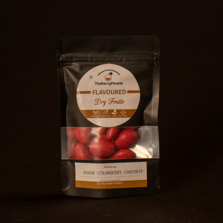 Deliciously sweet, Healthy, Crunchy, and Utterly Addictive Strawberry choco dip almonds. These oven-roasted almonds are low in calories. The mixture of flavourful strawberry and sweet taste with the nutritional benefits of badam makes it the perfect option for cravings and the ideal snack.